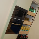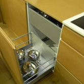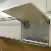 The upper cupboards are also equpped with silent doors thans to 'Aventos' lifting systems by Austrian manufecturer "Blum".