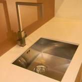 The complete kitchen has no handles since th fronts are made of mediapan made is such a was that they can imitate a handle. The sink is built-in that provides more elegance and it is easier to maintain. Both the sink and the faucet are made of inox made by Portugese "Rodi" with a ten year guarantee.