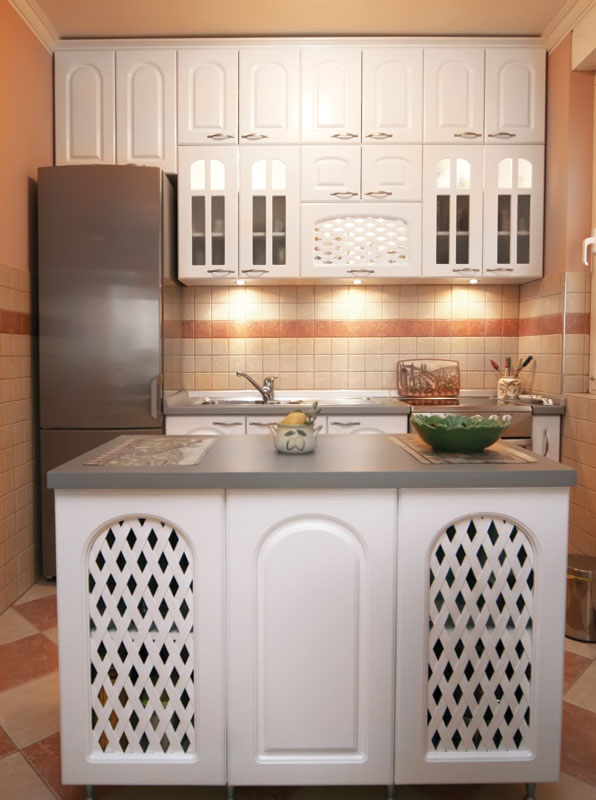 It is not easy to make a rustic kitchen, but we succedded in making a look of rustic kitchen by a choice of fronts. This is type of kitchen with island and it meets the basics of functinality and ergonomics. It has a rustic design, with elegant white colour. All the elements are made of mediapan (MDF) painted in white, whereas the composition with other parts stays rustic.
