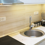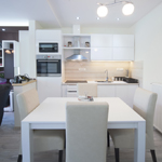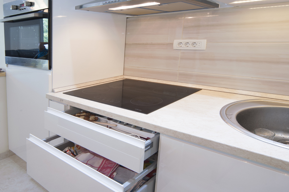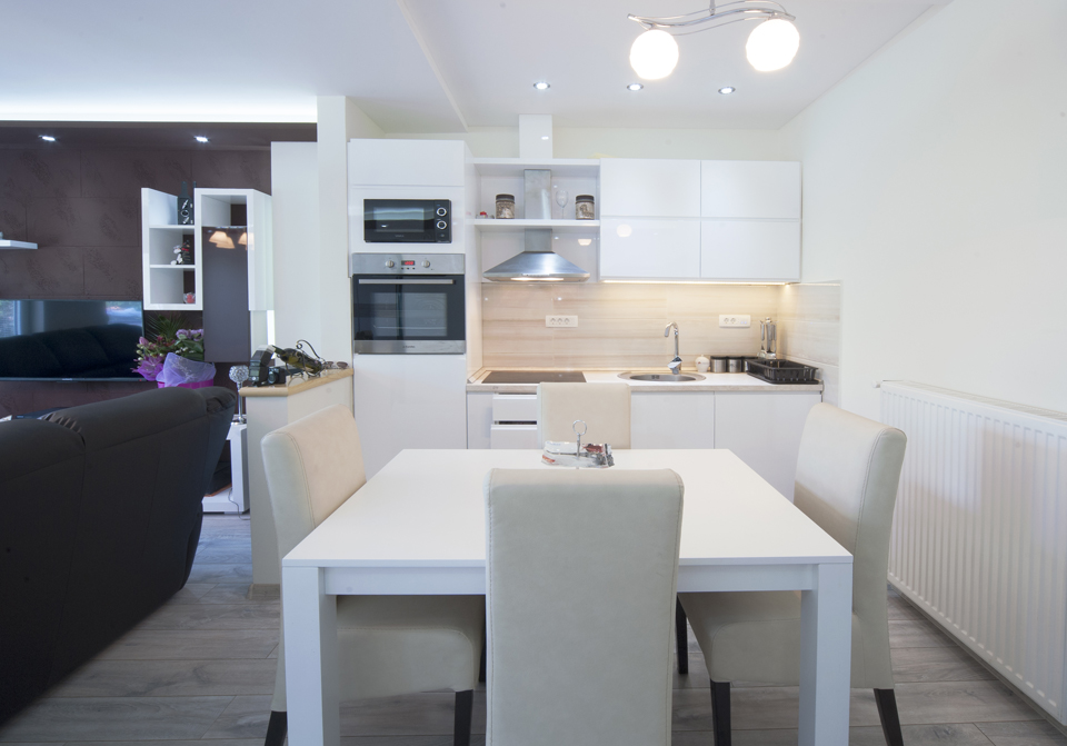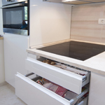 Kuhinja "Bella" je pravi izbor za ljubitelje svetlijeg enterijera, jer je napravljena od belog medijapana i kvarcne ploče svetlog dezena.Otvaranje elemenata je modernog dizajna,bez ručki, na dodir. Naizgled je jednostavna ali odiše elegancijom, a uz to je i veoma praktična. Sa najmodernijom tehnikom zadovoljiće sve vaše potrebe