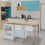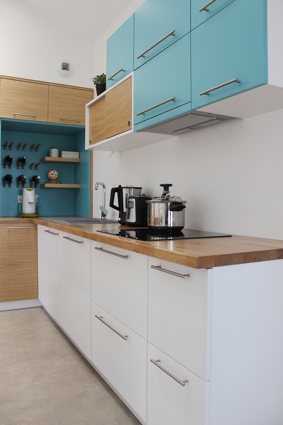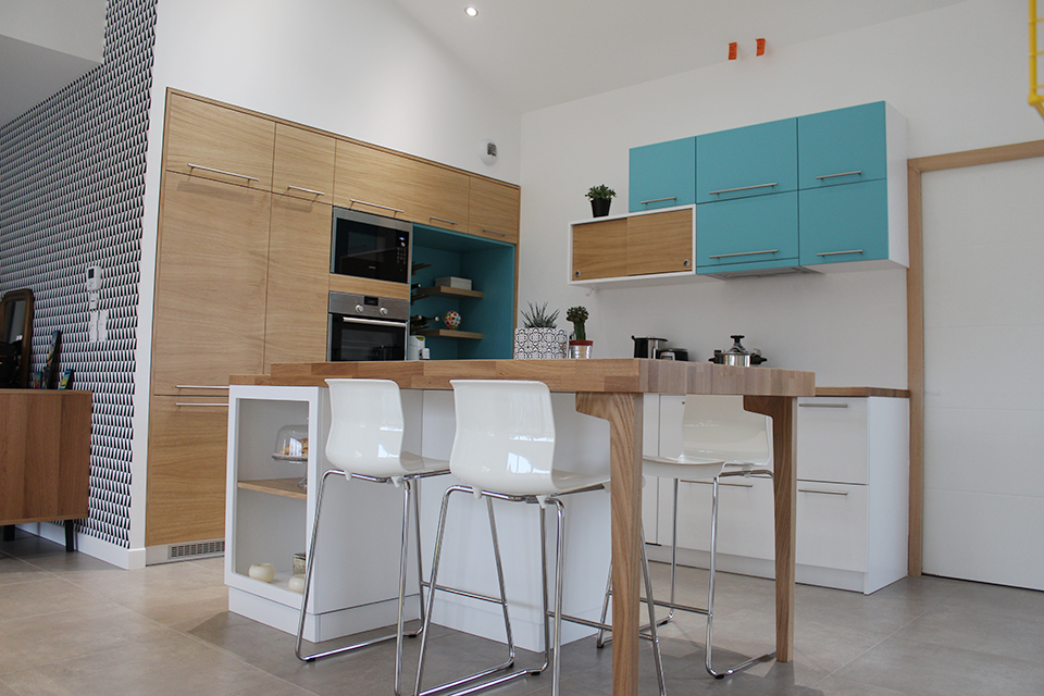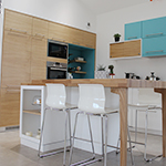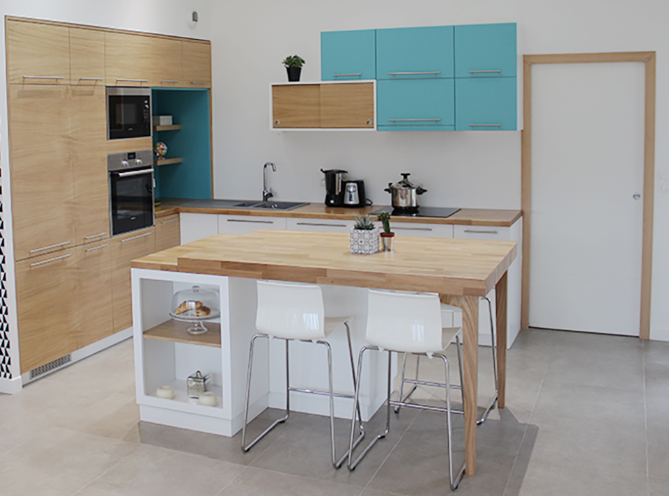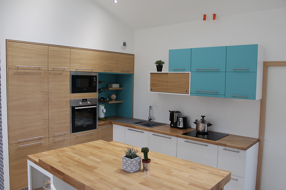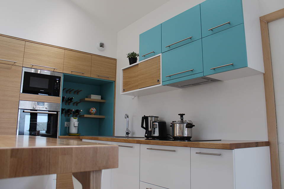 Kuhinja Potel je odlično dizajnirana po visokim Evopskim standardima i kao takva ispunila je visoke zahteve našeg klijenta iz Francuske. Kombinacija belog i plavog medijapana visokog sjaja i furniranog hrasta daće vašem životnom prostoru poseban pečat. Izuzetna funkcionalnost i elegancija sa najsavrenenijom ugradnom tehnikom zadovoljiće sve Vaše potrebe. Trpezarijski sto, poput pulta, pružiće maksimalnu iskorišćenost prostora i daće osećaj dodatne svežine Vašem domu. Radne ploča u dezenu furniranog hrasta je naša topla preporuka koja svakodnevno korišćenje pretvara u zadovoljstvo.
