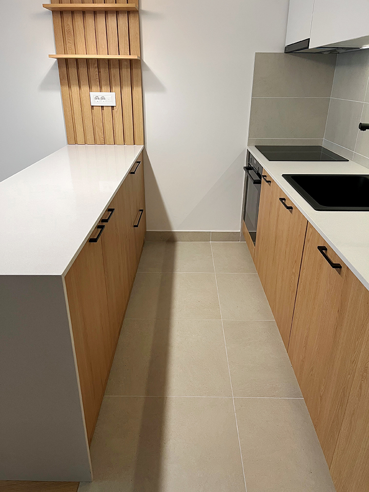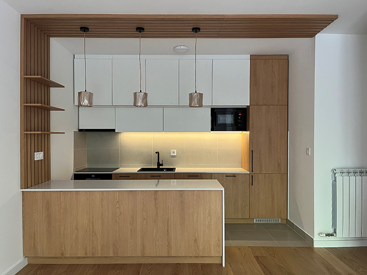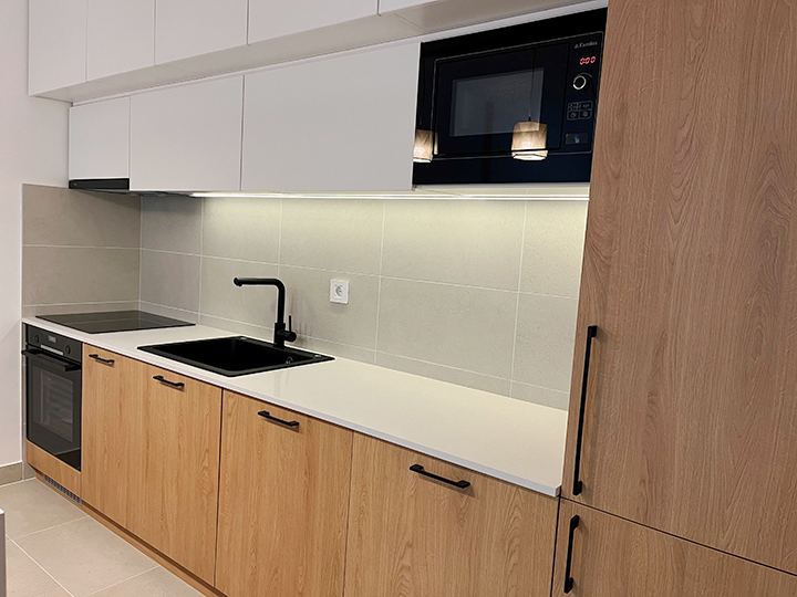 Kuhinja „Amelia“ može se upotrebiti kao drugo ime za kuhinju XXI veka. Minimalistički dizajn, sa svedenim linijama, čini je idealnom za moderno opremljene domove. Elementi su izrađeni od furniranog medijapana i medijapana u beloj mat boji i opremljeni nečujnim sistemom zatvaranja sa usporivačima koji sprečava oštećenja. Bela mat boja pruža širok spektar mogućnosti kombinovanja sa zidovima, pločicama i ugradnim elementima, pružajući pritom osećaj prostrane prostorije ispunjene svetlošću.