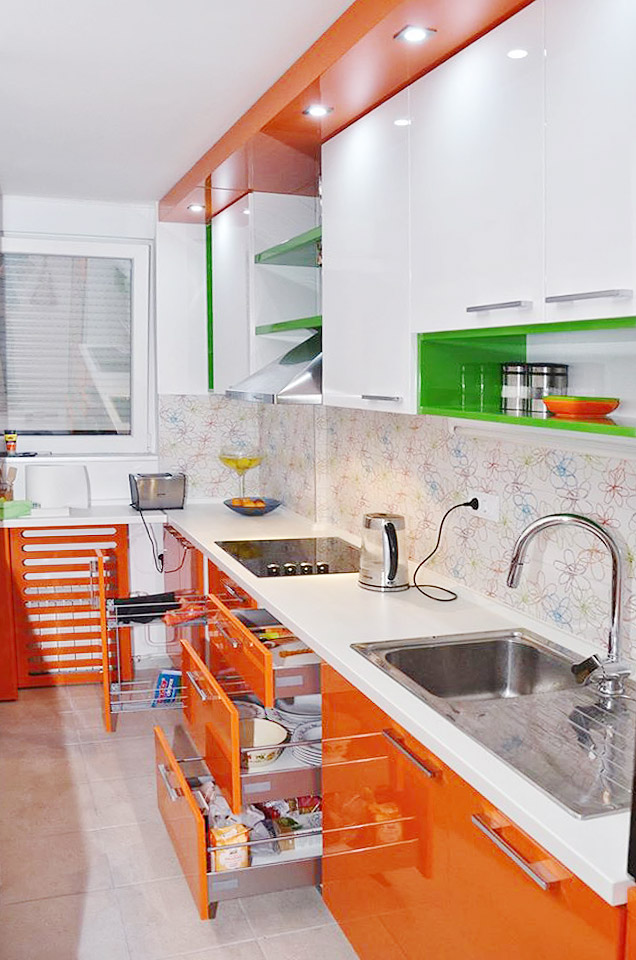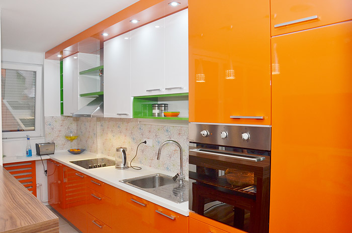 Kuhinja "DONNA" izradjena od medijapana farbanog u izrazitu boju, unece pravo osvezenje u vas dom. Kuhinja vrhunskog dizajna, izuzetno prilagodjena modernom stilu vaseg doma.
